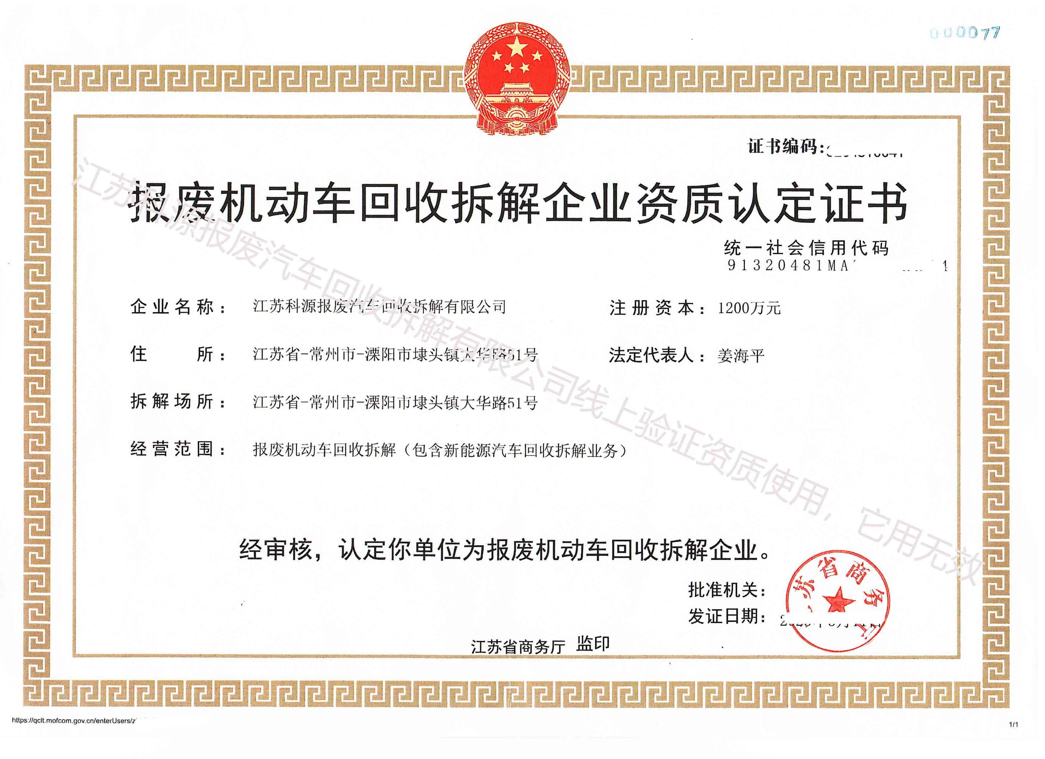 姹熻嫃縐戞簮鎶ュ簾姹借濺鍥炴敹鎷嗚В鏈夐檺鍏徃鎶ュ簾鏈哄姩杞﹀洖鏀舵媶瑙d紒涓氳祫璐ㄨ瀹氳瘉涔?/span>